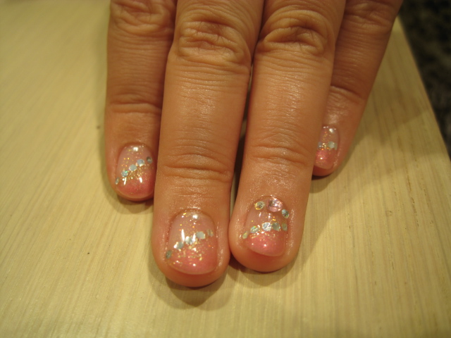 ピンクとホワイトのラメで