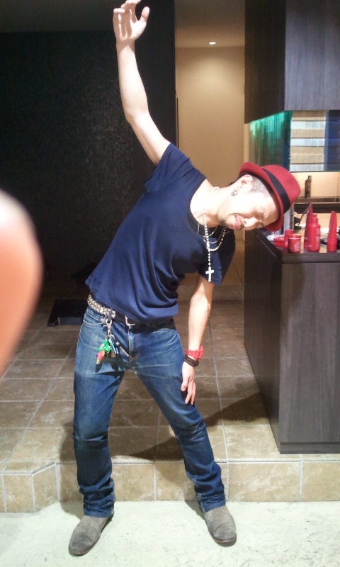 おじいちゃんのようにストレッチをしています(笑)