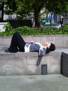 青空の下で寝てる